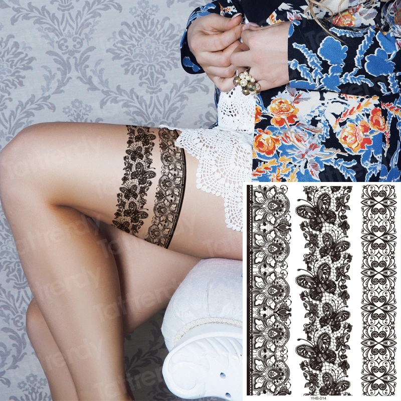 Sexy Tattoo For Women Thigh Tattoo Body Art Black Henna Lace Tattoo Sticker Girls Leg Arm Sleeve Tatoo Stockings Waterproof Temporary Tattoos Aliexpress